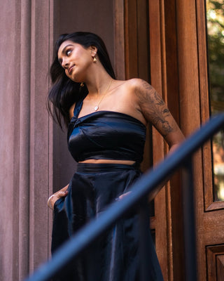 You can wear this anywhere - style it with our matching BLACK IN BUSINESS harem pants as a set, jeans, skirts, or whatever your heart desires (you can even wear it as a lehenga/sari blouse!). This versatile top is made from a quality viscose material that feels like silk. Features a smocked back, ensuring a body-hugging fit.
