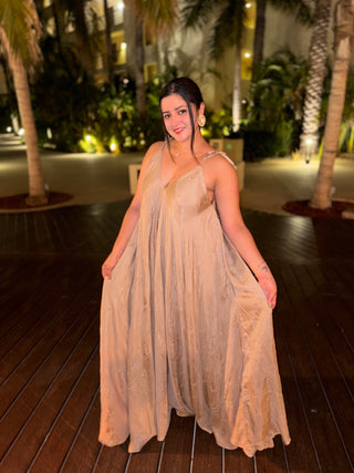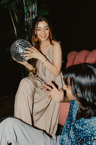 Featuring light mirror work, 2 deep pockets, adjustable tie straps, and an extreme-wide leg bodice, we guarantee an extra layer of comfort while staying cute.